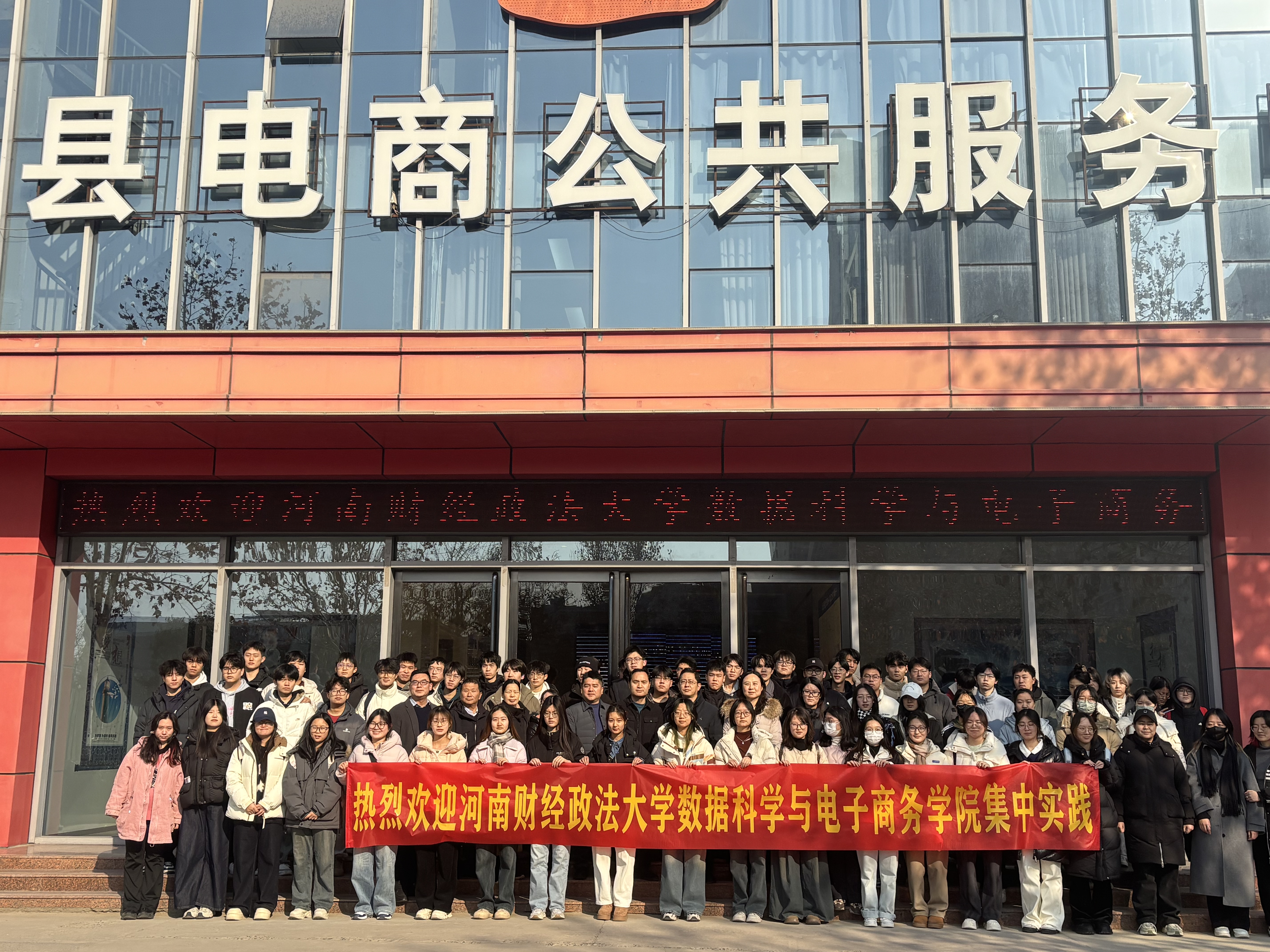 2025年1月3日,beat365亚洲体育在线官网电子商务专业学生在史晓东副院长及学院教师的带领下,来到新乡市封丘县电子商务服务中心,开始他们的集中实践之旅。